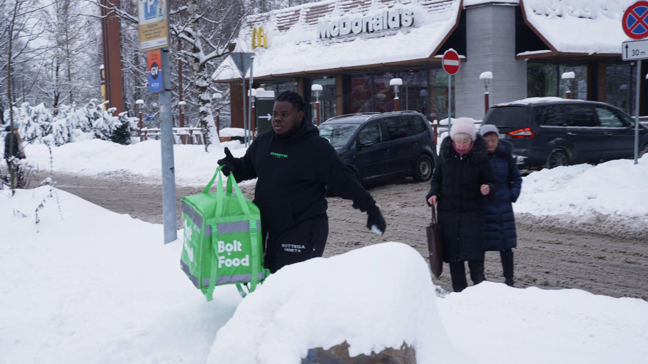 Invisible People is the story of people who go unnoticed in our everyday life because they are hidden behind the bright blue and green food delivery bags on the streets of Riga. They are mostly foreign students who, by cycling long distances every day, provide themselves with the means to live and study in Riga. Although we live in the same city, few of us have come into close contact with the characters in the story, so we have no idea what life paths have brought them to Latvia and how they feel about life here.